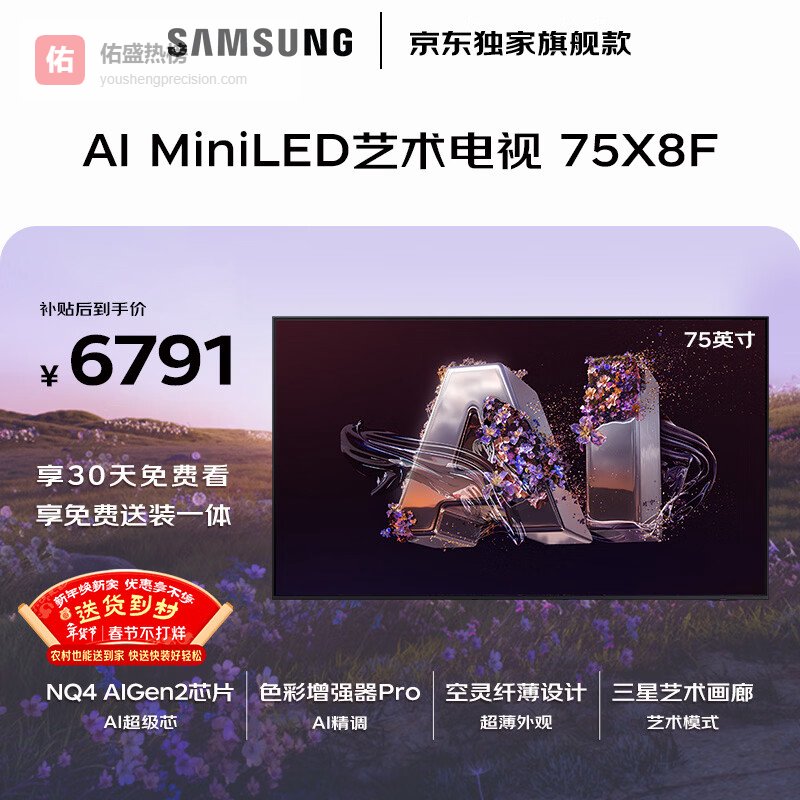 【京东自营】三星高端款75X8F75英寸量子点AIMiniLED艺术电视壁纸电视超薄平嵌144HzQ¥