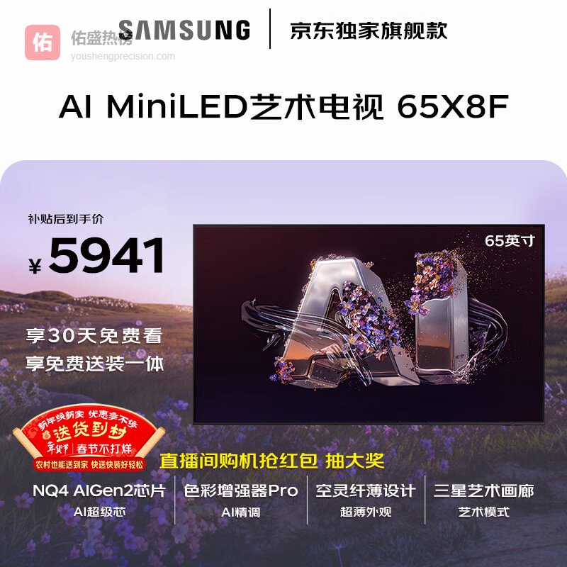 【京东自营】三星高端款65X8F65英寸量子点AIMiniLED艺术电视壁纸电视超薄平嵌144HzQ¥