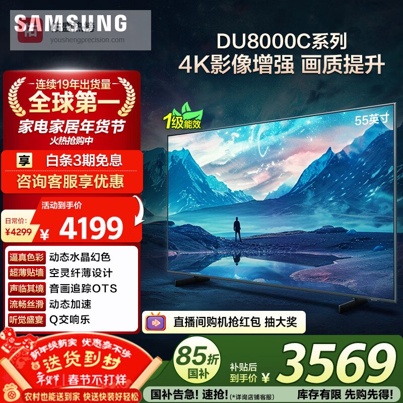 三星电视哪个型号好?第一款:三星超薄4K AI智能电视 UA55DU8000C