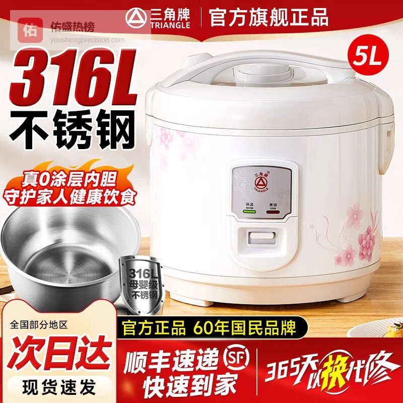 三角牌(Triangle)电饭煲0涂层家用4-5人大容量多功能蒸煮一体老式不锈钢内胆电饭锅5-8人微压不粘锅2-3人 5L 【升级0涂层】316不锈钢¥