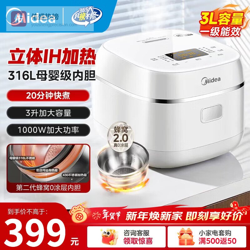 美的(Midea)电饭煲IH加热电饭锅0涂层2-4-5-8人无涂层316L不锈钢内胆母婴级小米粥智能预约一级能效年货好物 316L母婴级内胆 3L 蜂窝0涂层不粘锅¥