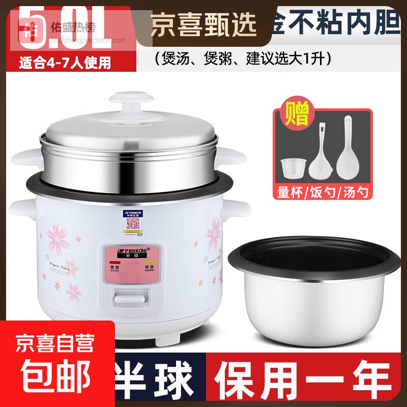 半球电饭煲电饭锅家用大容量可蒸煮电饭煲1-2人 不粘锅多功能一键操作 老式1.5-6L升单人宿舍用迷你 白色 5L 特厚内胆不粘【带蒸笼】4-7人用¥
