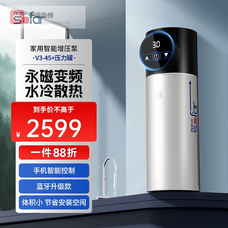 苏法尔(sofar) 增压泵家用全自动轻音增压器永磁变频泵自来水智能马桶加压水泵 【升级屏】V3-45PRO+压力罐+包安装包材料¥