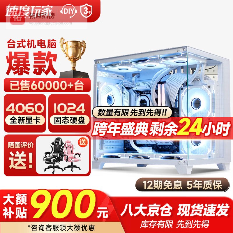 速度玩家英特尔酷睿i7升十八核4060电竞独显组装台式机电脑主机游戏办公Ai设计师整机全套 主机+32英寸4K级护眼屏全套 特:i9级36核芯4K光追特效丨1T丨4050独显¥