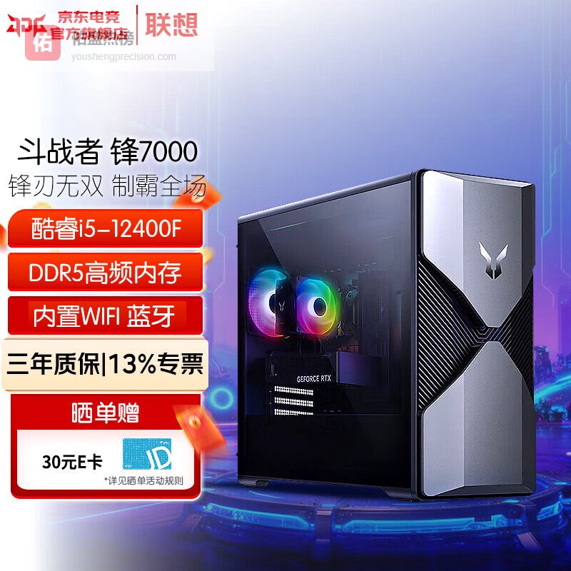 联想(Lenovo)来酷斗战者锋7000 电脑游戏台式机游戏主机设计师电竞直播整机全套升级款 ZC40 i5-12400F(6核12线程)单主机 16G内存 512G固态 RTX3050-6G独显¥