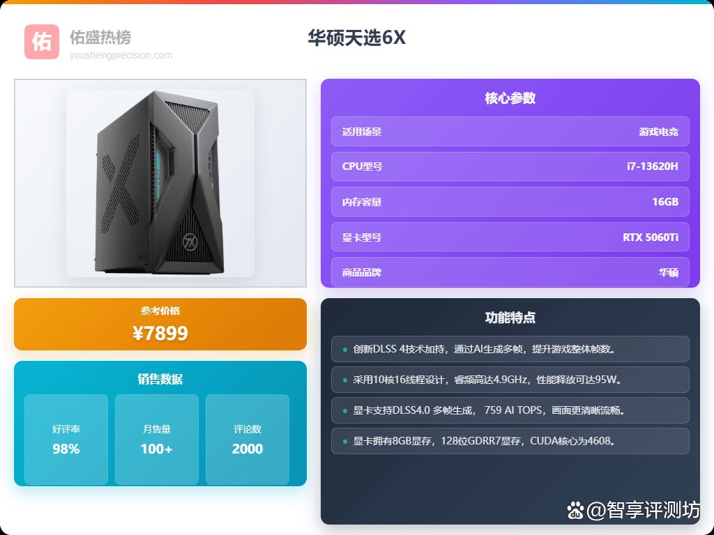 华硕天选6X 台式机游戏主机游戏电竞 国家补贴(酷睿i7-13620H RTX5060Ti-8GB显卡 16G DDR5 1TB SSD)¥