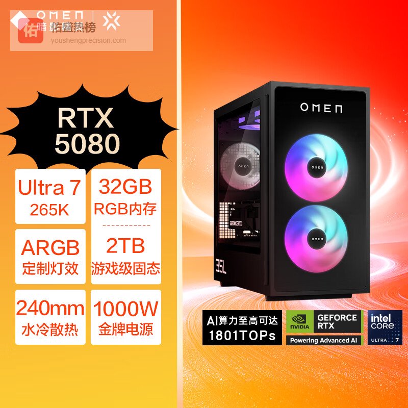 惠普(HP)暗影精灵11高端游戏电竞台式电脑主机水冷LCD(Ultra7 RTX5080 32G DDR5 2TB 1000W电源)¥