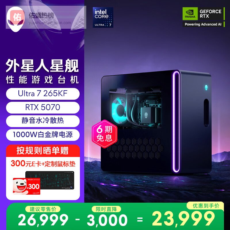 外星人台式机 星舰R17 高端电竞 游戏台式电脑(Ultra7 32G 1T RTX5070)水冷 AI训练 设计图站 黑神话¥