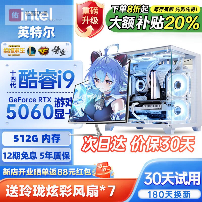GAVM电脑台式机128G酷睿i9台式电脑整机5060独显电脑主机吃鸡组装电脑大额补贴家用游戏水冷电脑整机 主机+24英寸【超清高刷显示器+键鼠套装】 套四:i9级48芯8G电竞独显/32G/畅玩3A¥