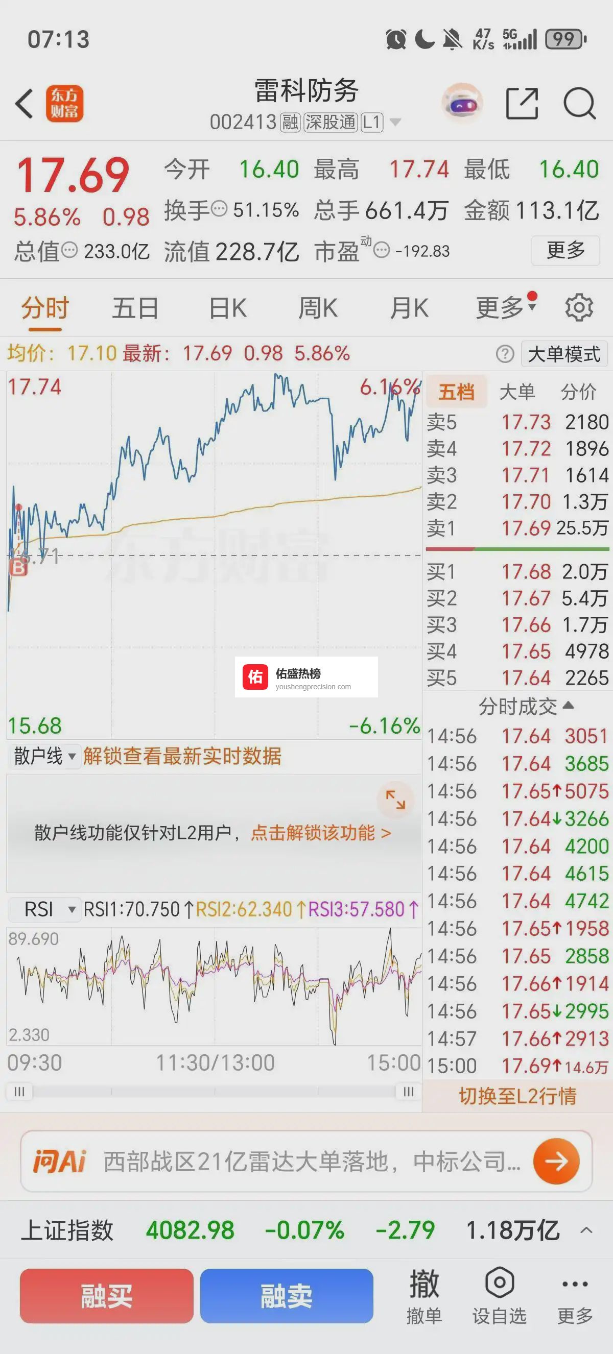 第一个判断点,就是看它拉升的理由硬不硬。岩山科技现在没有业绩爆发、没有技术突破,更没有政策利好,前三季度净利润才微增 1.2%,业务增长挺乏力的,而且前面涨幅已经吃掉了不少估值空间。这次突然冲高,怎么看都是游资借着前期超跌来搞个短炒。雷科防务的问题反而更直白,主营的军工电子业务没新增订单,反而前三季度还亏着,现金流紧张,股东还有减持计划。这种状态,资金对它能有多少信心呢?靠情绪炒一下短线,不可能撑太久。