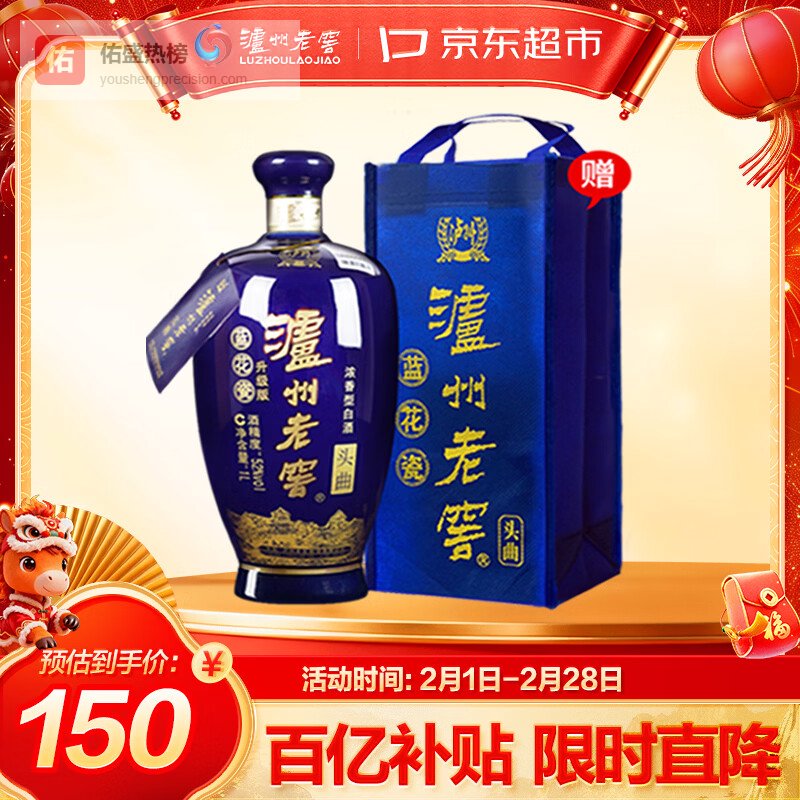 泸州老窖蓝花瓷头曲 大瓶大容量 浓香型白酒 52度 1000ml 单瓶 年货节送礼¥