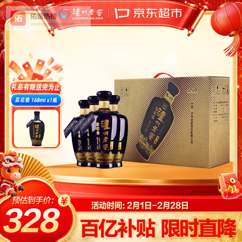 泸州老窖 蓝花瓷头曲 浓香型白酒 52度 500ml *4瓶 整箱装 年货节送礼¥