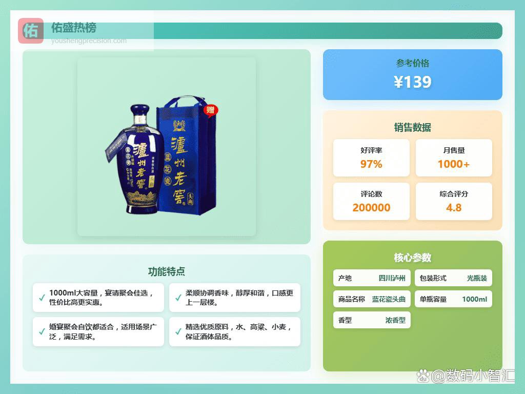 ③ 实惠大容量:每瓶是1000ml的大容量,适合朋友聚会或者家里宴请用。喝完还能继续存放一段时间,不会一下喝完就没有了。价格也挺实惠,性价比不错,无论自饮还是送礼都挺合适的。
