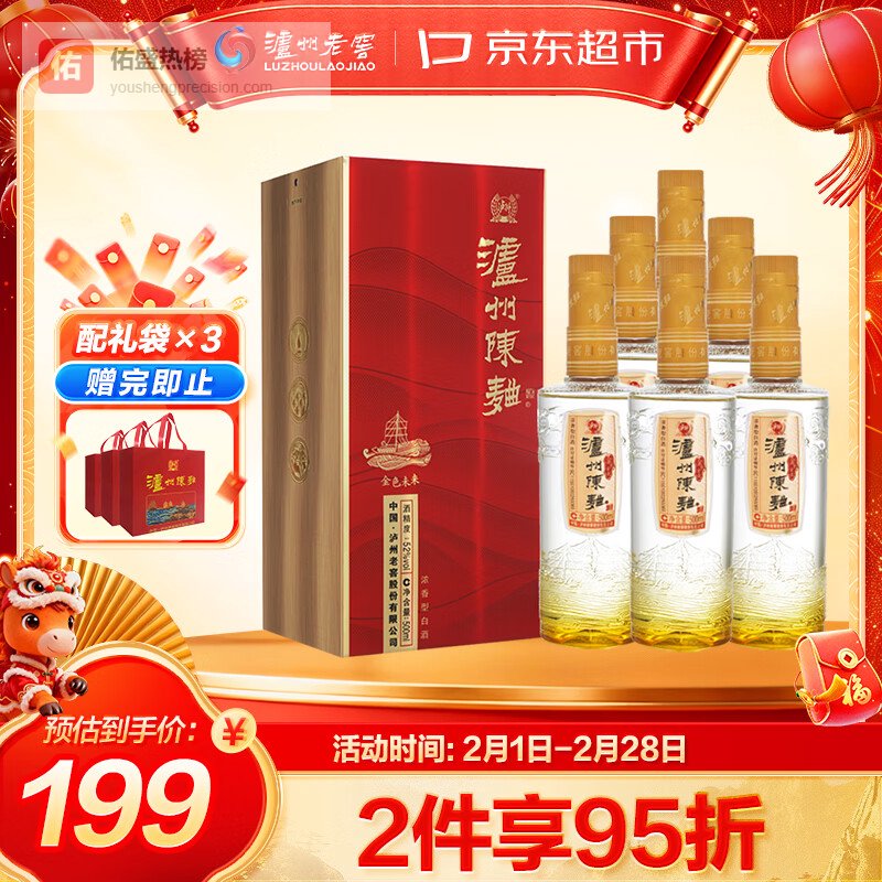 泸州老窖 金色未来 泸州陈曲 浓香型白酒52度 500ml*6盒 整箱 年货节送礼¥