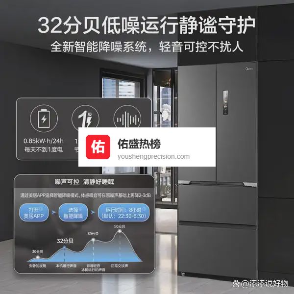 内部材质采用婴儿奶瓶级HIPS材质,安全性挺有保障。还配备大容量果蔬盒,保持食材的保湿和新鲜。LED隐藏照明灯为内部提供柔和光线,三层可拆卸门封条方便清洁和维护,保持内部温度稳定。静音表现不错,运行声音低至37dB,不会干扰生活,温度调节也比较灵活,满足不同季节使用需要。