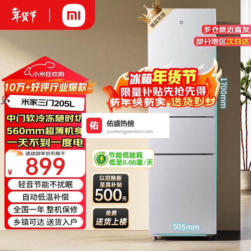 小米米家三门冰箱205升家用宿舍租房小户型电冰箱 多门三开门三温区节能低音 冷冻冷藏中门软冷冻 205升三门冰箱银灰色【租房优选】¥