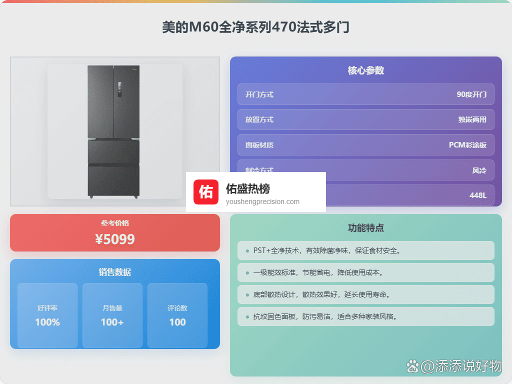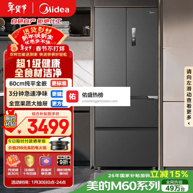 六、美的这款美的M60全净系列冰箱配备了全净健康科技,试了下,除菌率能达到99.999%,还能有效去除异味和农药残留。它的六重净化功能让食材更安全,保鲜更持久,尤其适合家庭日常使用,实测后觉得挺靠谱的。