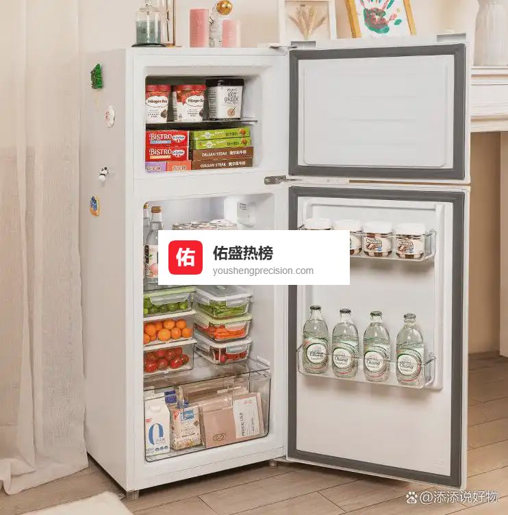 八、日普这款日普48升电冰箱采用双门设计,冷藏和冷冻空间独立,方便分类存放不同食材。整体体积较小,适合空间有限的场所,比如小户型、办公室或出租屋,帮助节省空间的同时还能满足基本储藏需求。
