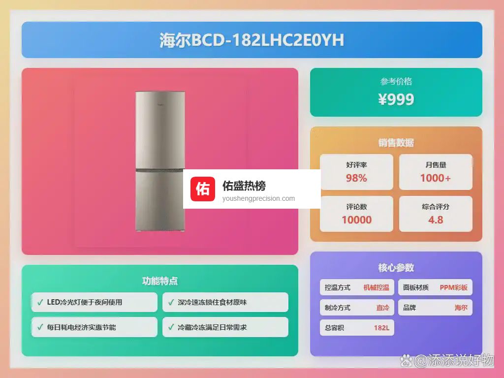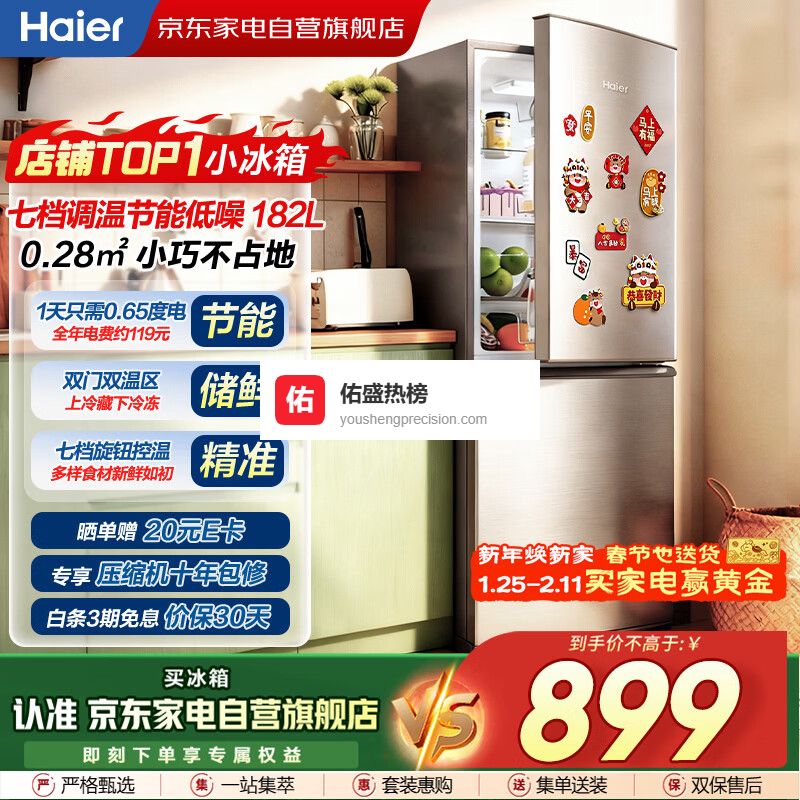 七、海尔这款海尔BCD-182LHC2E0YH冰箱采用直冷制冷方式,配备定频压缩机,确保冷却效果稳定且能耗较低。双门设计分隔冷藏和冷冻空间,容积合理,能满足日常食材的存放需求。机械控温七档旋钮,让你可以根据季节和食材类型轻松调节温度。