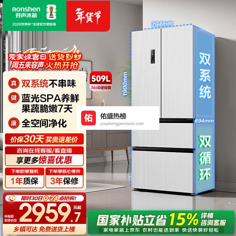 容声509L法式多门冰箱双系统双循环一级能效风冷无霜节能变频大容量以旧换新BCD-509WD18MP白国家补贴¥