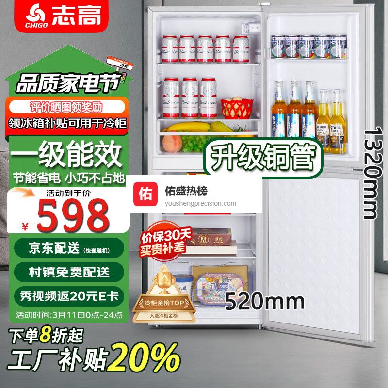 志高大冰箱家用 冷藏冷冻两用宿舍寝室出租房用双门办公室电冰箱节能省电一级能效家用 S258银色【店长推荐】【冷藏三层冷冻三层】¥