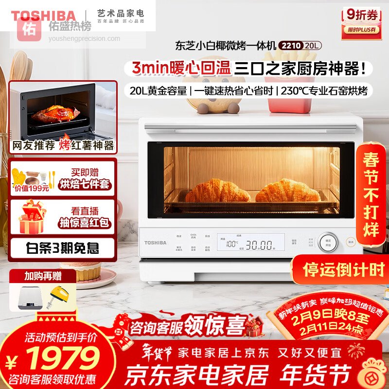 东芝(TOSHIBA)小白椰微波炉烤箱一体机mini小型家用微烤一体机厨房家用白色20L ER-YR2210CNW¥