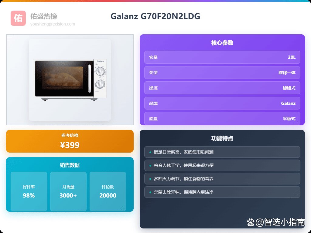 四、Galanz微波烤多合一:这款微波炉结合了微波和烤功能,加热、烧烤两不误,给你做饭、烤点心都挺方便。无论是热饭还是烤肉、烤蛋糕,都能轻松搞定,适合日常家庭使用。