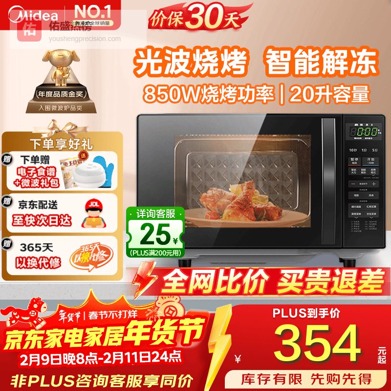 美的(Midea)微波炉烤箱一体机光波炉 小型20升家用平板 速热解冻烤肉烤蛋挞 微烤一体机(M1-L201B)¥