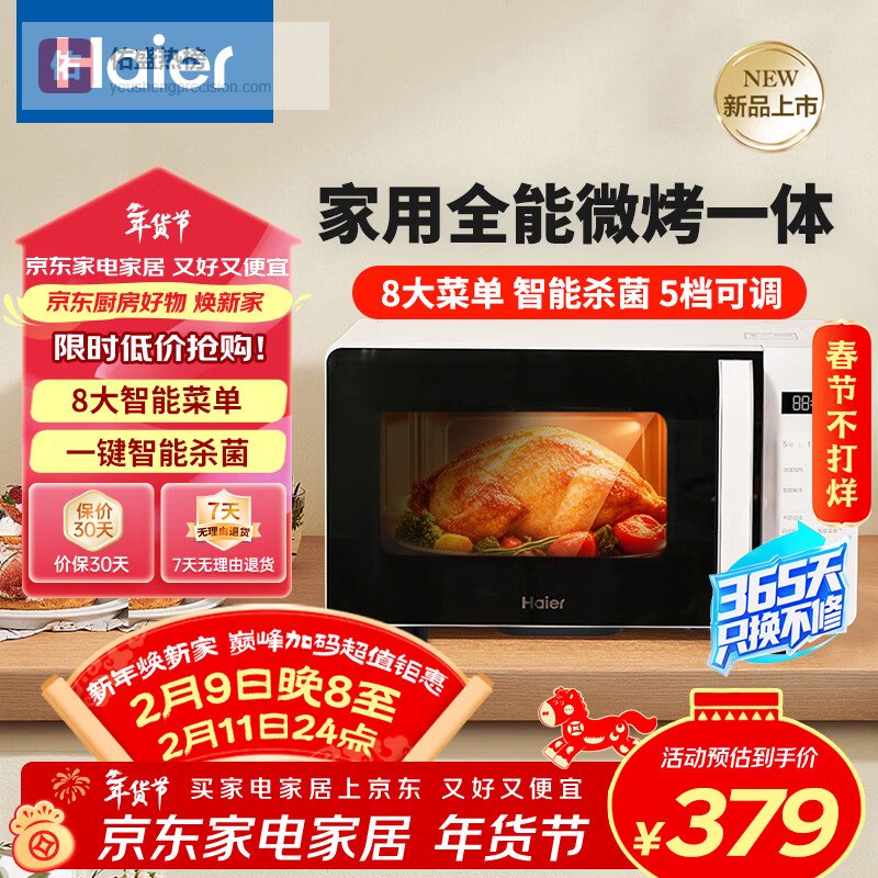 海尔(Haier)微波炉烤箱一体机 小型家用20升烧烤解冻 平板易清洁 智能菜单多功能微波炉HW-GE20T1W¥
