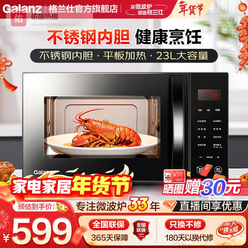 格兰仕(Galanz)微波炉 微烤一体不锈钢内胆 光波炉 平板加热光波烧烤家用高效速热 微波炉烤箱一体机 【不锈钢内胆】0涂层更健康¥