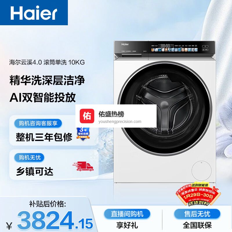 海尔(Haier)云溪4.0 滚筒洗衣机单洗全自动家用 10KG超薄 家电国家补贴 京东自营直驱58¥