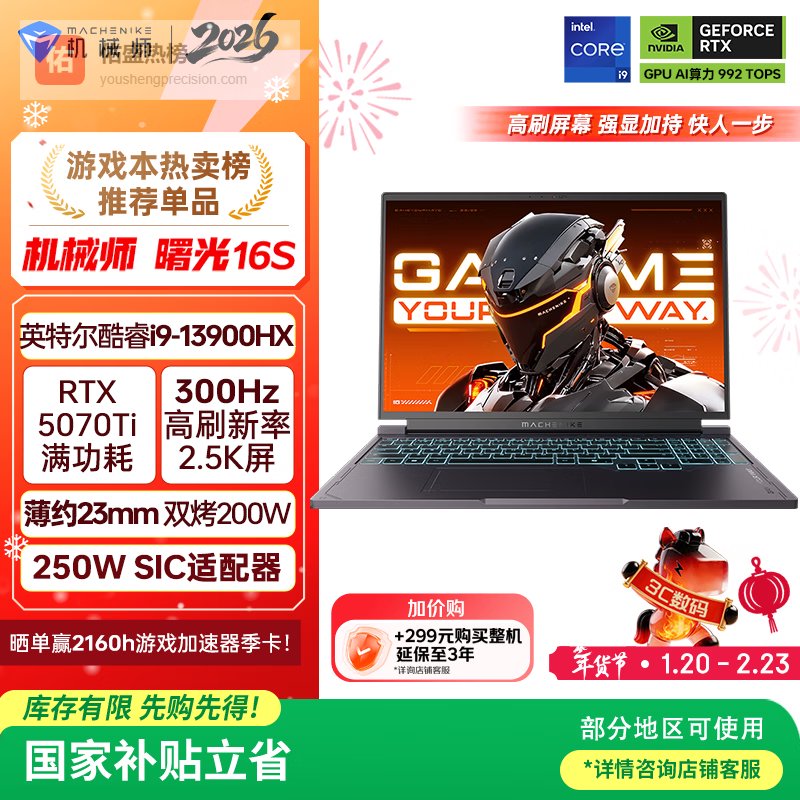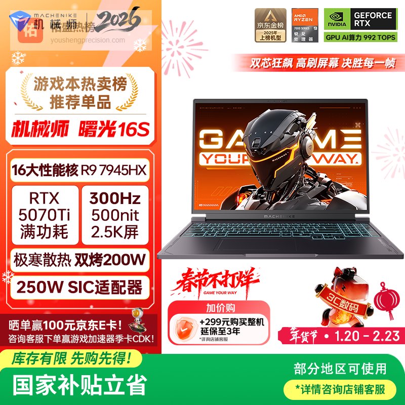 【京东自营】机械师曙光16S【RTX5070300Hz屏】16英寸AI学生办公游戏本笔记本电脑国家补¥