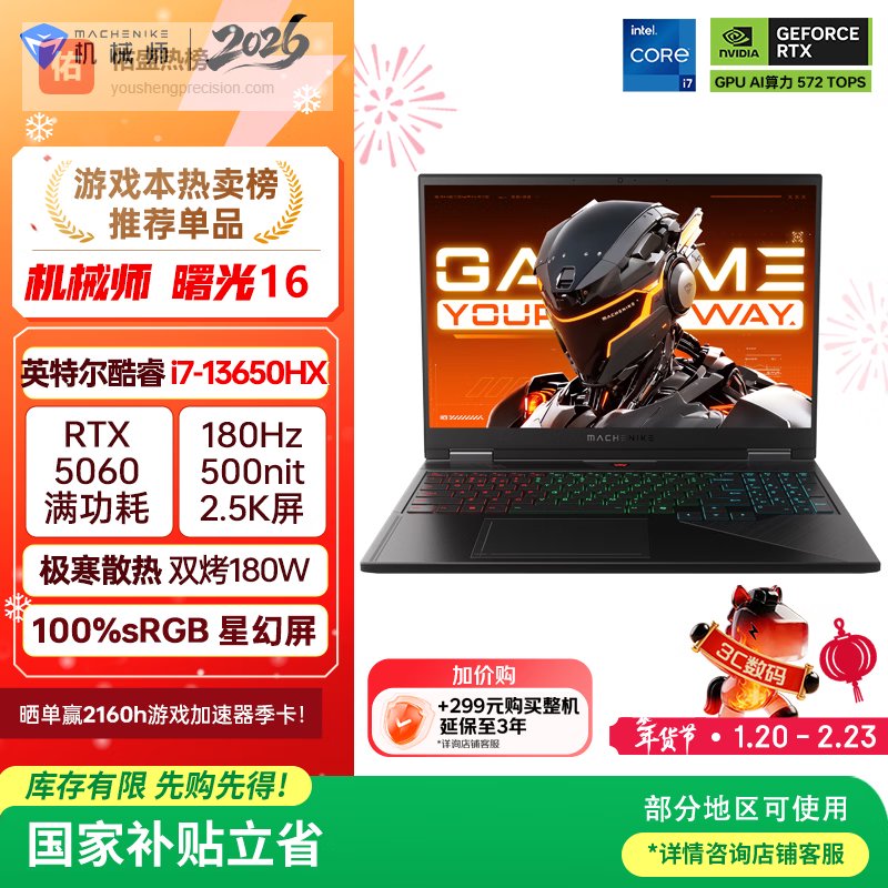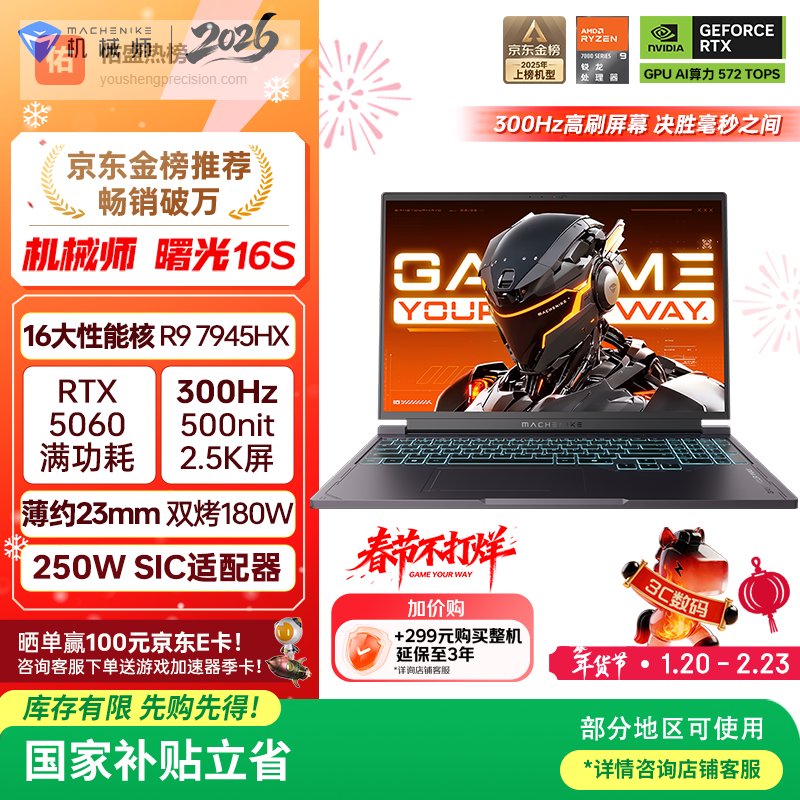 【京东自营】机械师曙光16S【RTX5060300Hz屏国家补贴】16英寸AI学生办公游戏本笔记本电¥
