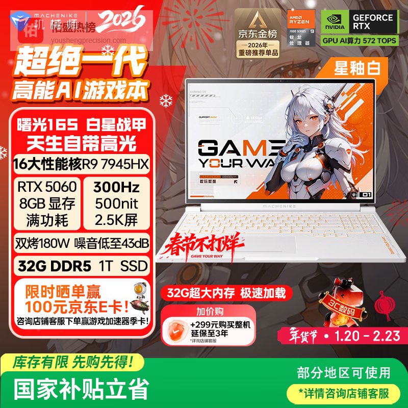 【京东自营】机械师曙光16S星釉白【300Hz屏】16英寸AI办公游戏笔记本电脑国家补贴¥