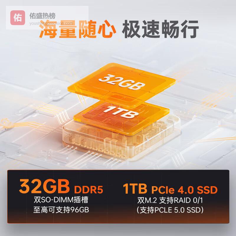 多功能存储扩展:支持双M.2 SSD和RAID配置,满足大容量数据存储需求,数据传输迅速而安全。