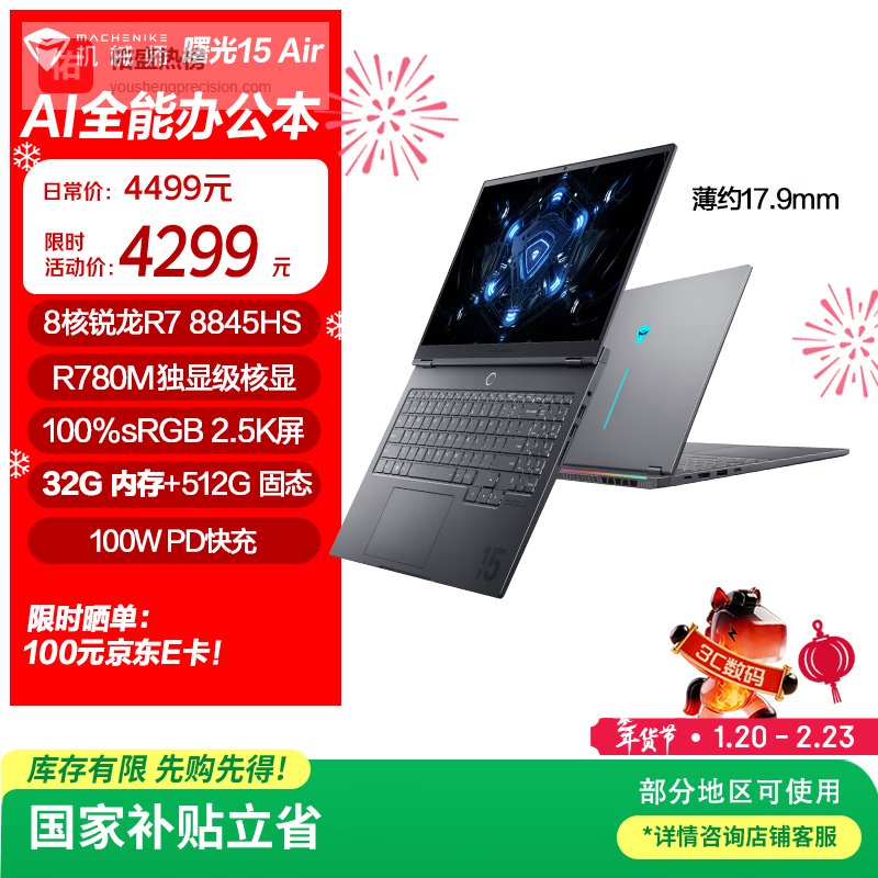 【京东自营】机械师曙光15Air【国家补贴】15.3英寸AIPC学生办公笔记本电脑R7-8845HS¥