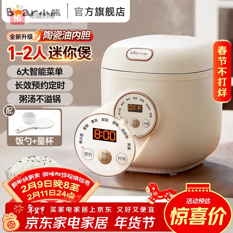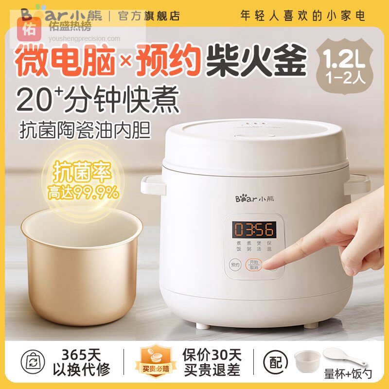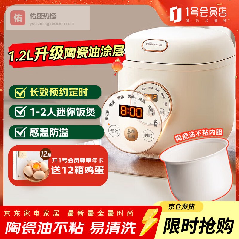 小熊(Bear)电饭煲精巧1.2L迷你小容量电饭锅一人食家用宿舍1-2人多功能压力快煮饭锅智能预约煲汤煮粥米饭锅 【陶瓷油涂层】 DFB-C12L9 1.2L¥