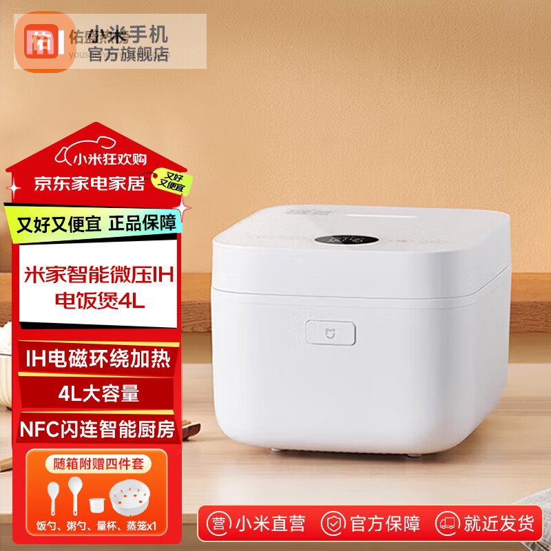 米家小米智能电饭煲IH微压版3L/4L 家用小型多功能电饭锅大容量煲汤蒸煮饭锅可调多用途锅蒸饭锅 米家智能微压IH电饭煲 4L¥