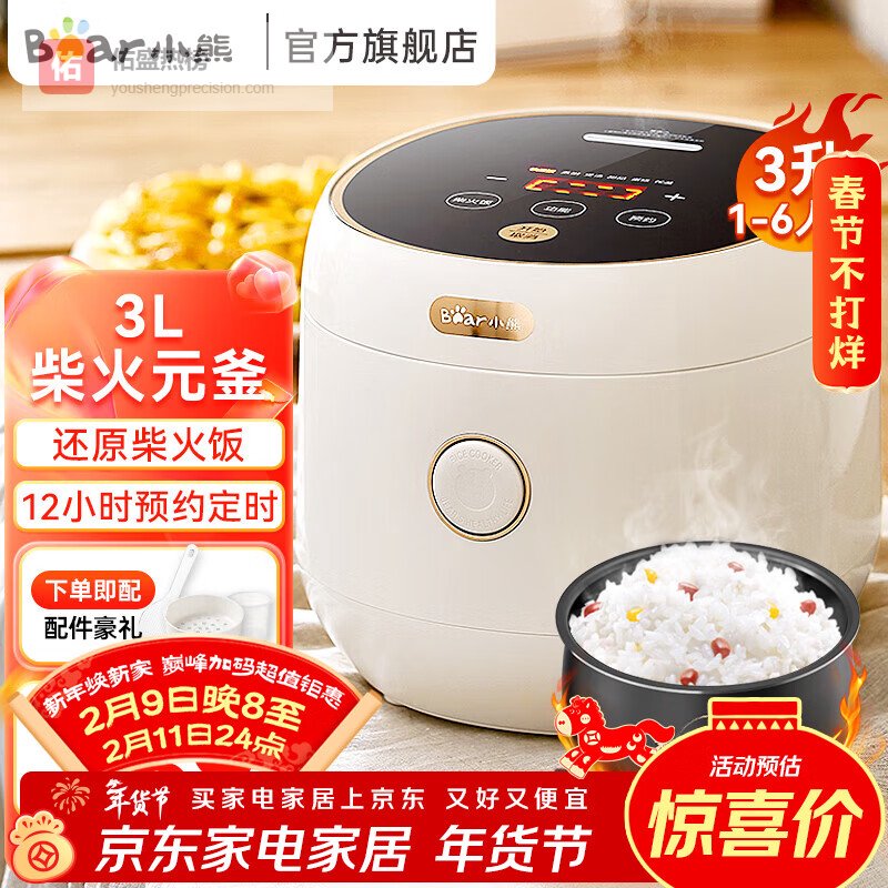 小熊(Bear)电饭煲 电饭锅 家用多功能3升智能防溢预约元釜柴火饭4-5人米饭锅 【柴火元釜内胆C30L3】 3L¥