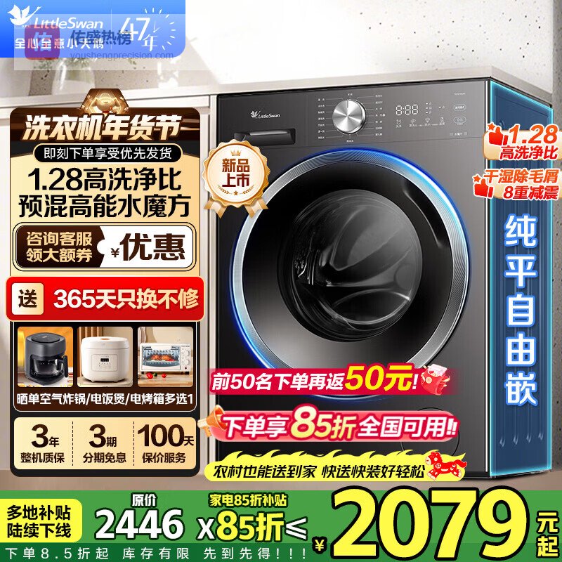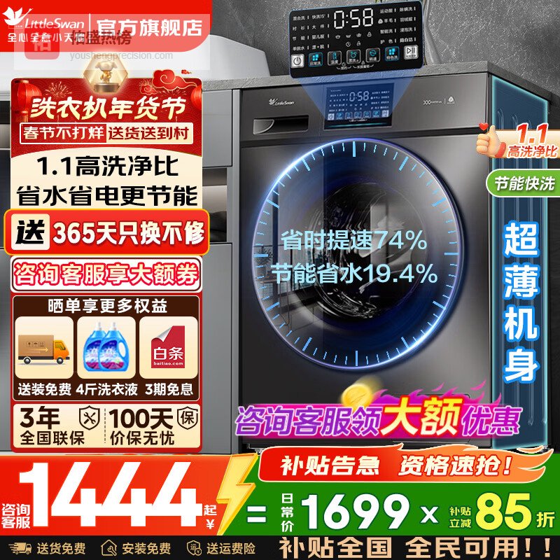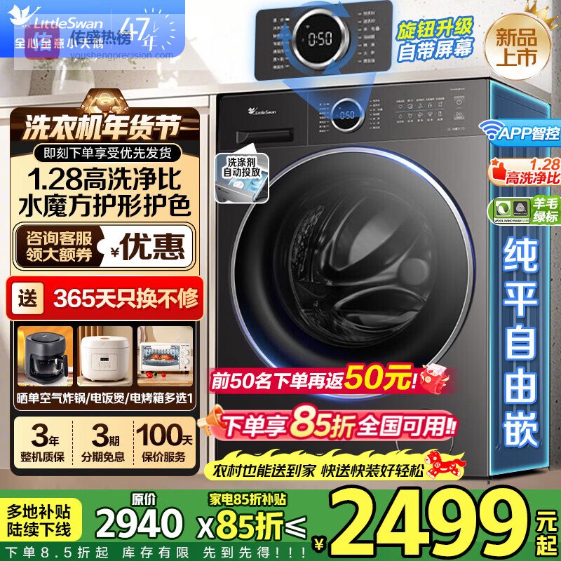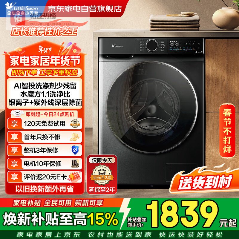 小天鹅(LittleSwan)滚筒洗衣机 水魔方家用大容量全自动洗脱/洗烘一体烘干冷水洗变频除菌超薄纯平全嵌 智投 家电补贴 【全嵌新品628P】1.28洗净比+AI智投 单洗¥