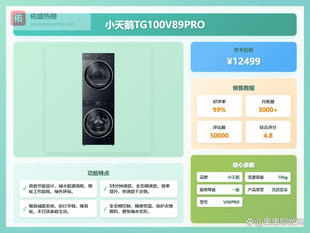 写在最后:总的来说,小天鹅变频洗衣机在省电、耐用性方面还是不错的,在选择时可以多关注一下容量、洗净比、特殊功能等,结合自己的实际需求,相信你一定能挑到一款称心如意的洗衣机,让洗衣这件事变得更轻松、更省心!