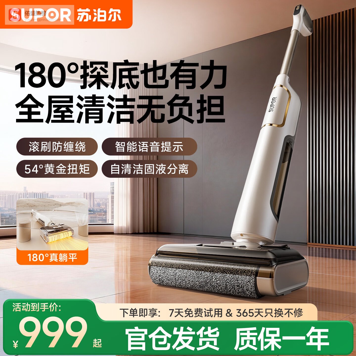 【品牌直营】苏泊尔洗地机拖地机扫洗拖吸一体自动清洁家用无线吸尘器180°躺平13cm超薄0缠毛0异味¥