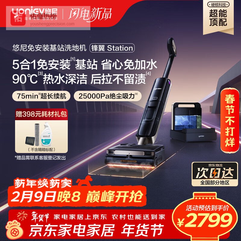 【京东自营】悠尼锋翼station【5合1全能基站】蒸汽自清洁180°超薄躺平90℃热水洗0缠毛全向¥