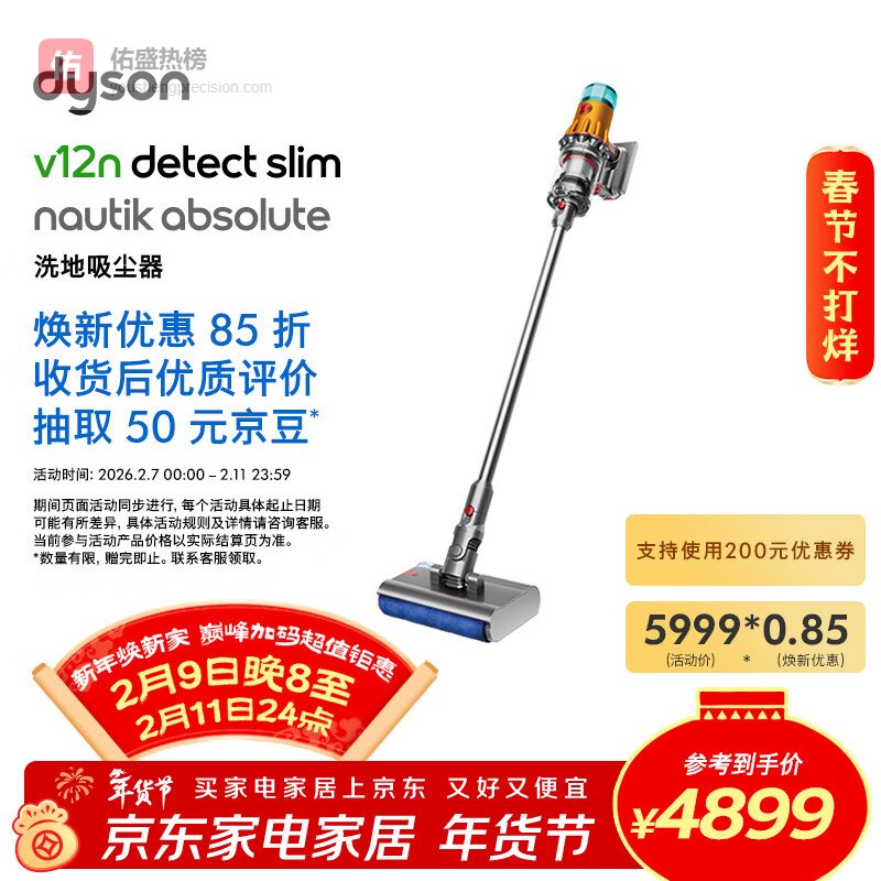 【京东自营】戴森V12nDetectSlimNautikAbsolute吸尘洗地机手持无线吸拖一体大¥