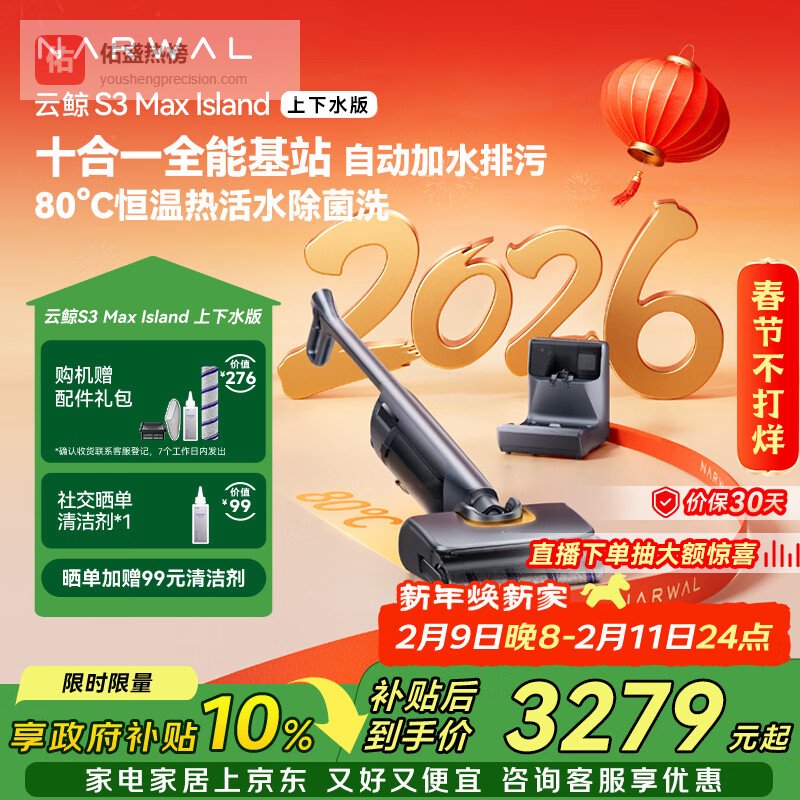 【京东自营】云鲸洗地机S3MaxIsland【自动上下水80℃热活水23kPa大吸力】长续航吸洗扫拖¥