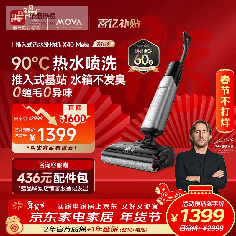 【京东自营】Mova春晚同款推入式洗地机X40Mate【90℃热水洗地】7天抑臭三年质保扫吸拖洗地一¥