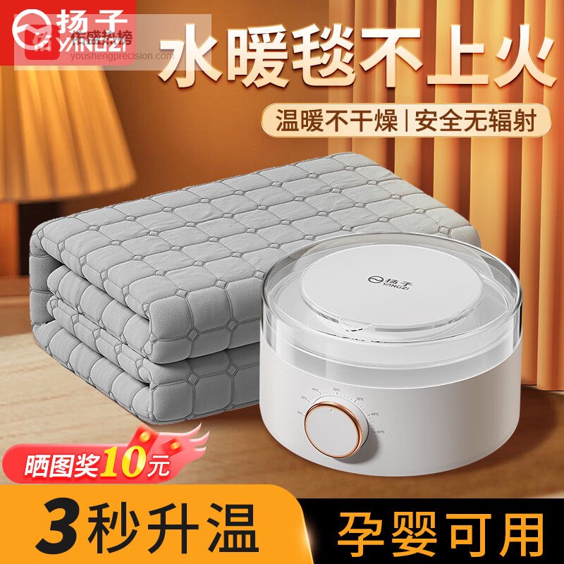 第2款:扬子水循环电热毯参数:水暖循环加热、水电分离设计、20-65℃温度调节范围、智能恒温控制、支持定时功能