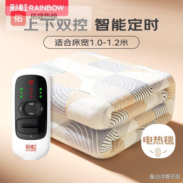 第1款:彩虹智能定时除螨电热毯参数:品牌彩虹、无纺布面料、3档以上可调温、支持定时(4/8/12小时)、电热丝加热