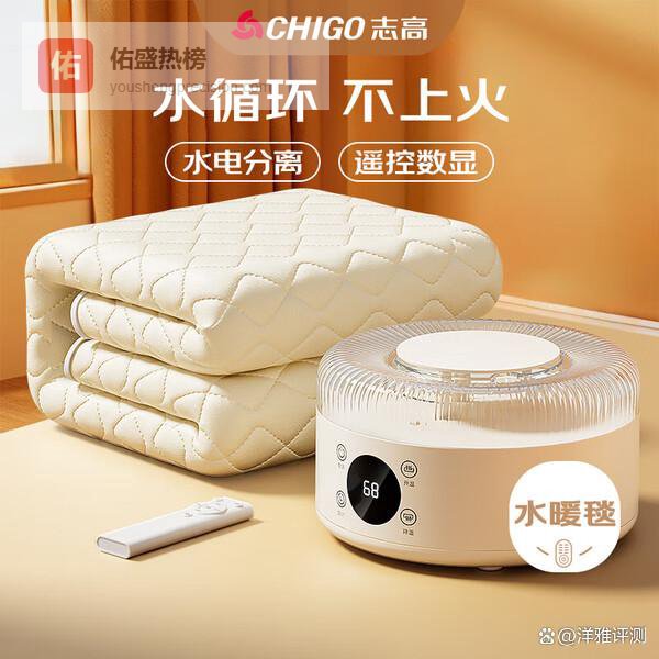 第3款:志高水暖电热毯① 水循环恒温:告别传统电热丝那种发热不均匀的情况,这款用的是水循环加热,通过主机把水加热后,在毯子里循环,这样整个毯子都能均匀发热,睡觉更舒服。而且它还有温控功能,水温能保持恒定,不用担心忽冷忽热。