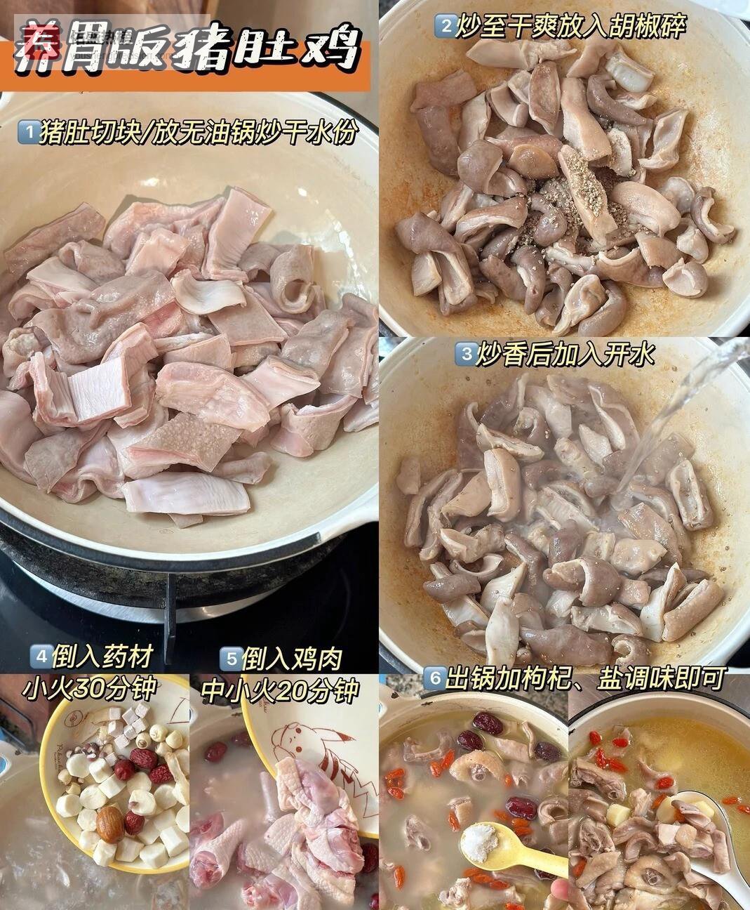 所以,如果你真想喝猪肚鸡,必须进行“健康改造”:第一,猪肚彻底刮掉内壁的肥油,用面粉和醋反复搓洗去腥,而不是靠后期加大量料酒掩盖。 第二,鸡肉和猪肚焯水要彻底。 第三,最关键的一步:炖煮前,把猪肚无油下锅干煸,煸炒到微微发黄,逼出内部油脂,再加入开水。 这样炖出来的汤,依然香浓,但油腻感大减。 最后,可以加入山药、莲子等真正健脾的食材,而不是单纯追求浓白。 即便如此,这类汤品一周一次足矣,绝不可当水喝。 那些宣称喝浓白肉汤大补的,不是蠢,就是坏。